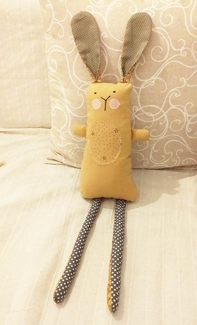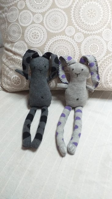 Meanwhile I made another bunny. This one is from new socks I bought while in Athens. Slightly different from the others, but its all about trying new ways to do things.