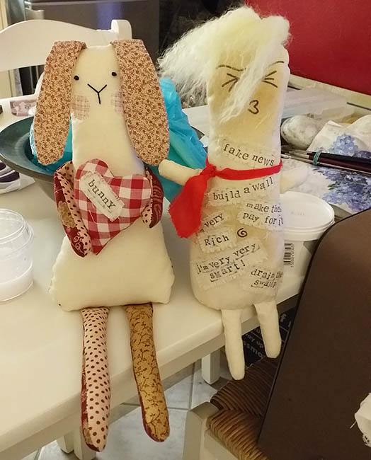 Time to share some of the soft toys I’ve been making lately. Some of them, like the two above, were custom orders as gifts. A cute bunny and a Trump voodoo doll.