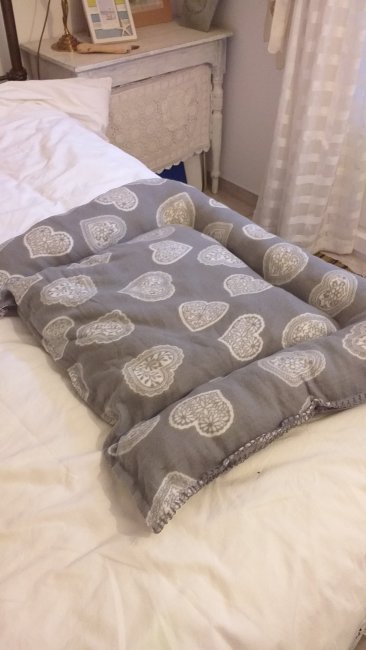 I bought the grey throw as it suits my bedroom. As you can see, Lainee enjoys her own space while sleeping on my bed.