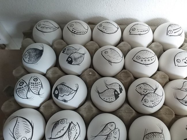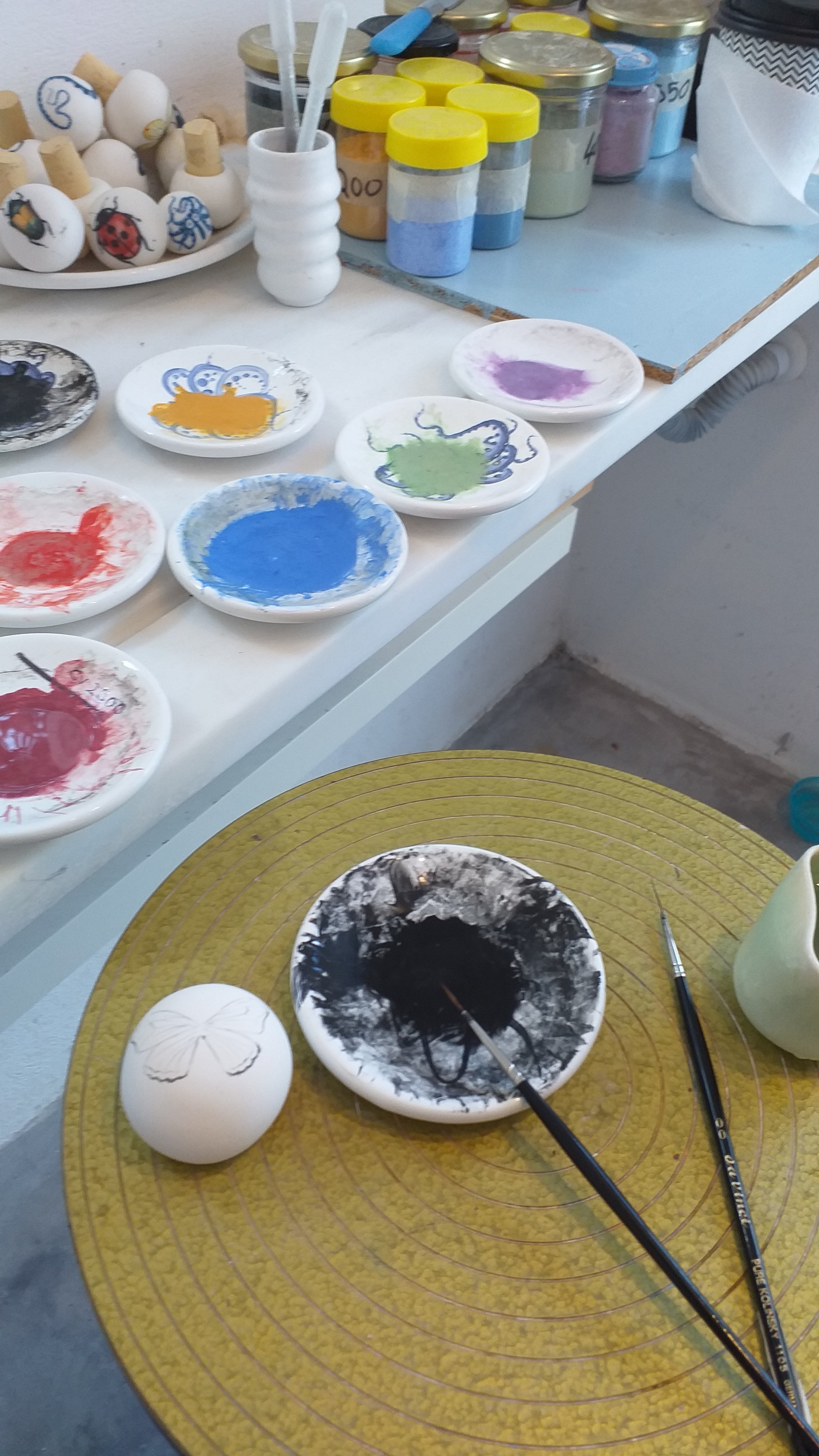 I have been painting on porcelain clay items for Yria Ceramics on Paros.