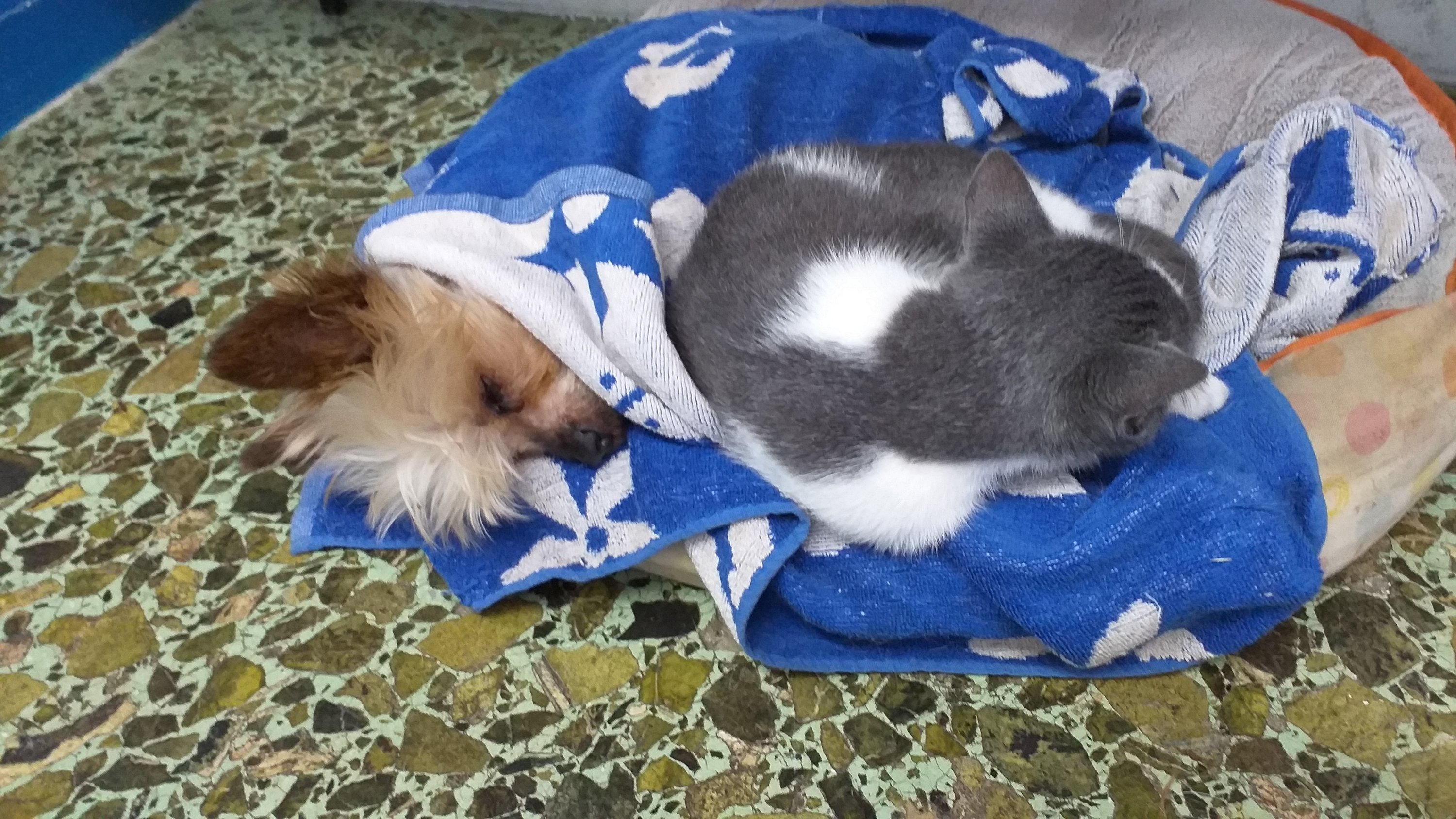 The dogs I’m dog sitting are Grumpy, a tiny 17 year old yorkie who is deaf and blind, and Pacquiao, an american staffie. And a kitten called Gato. They are all gorgeous of course.