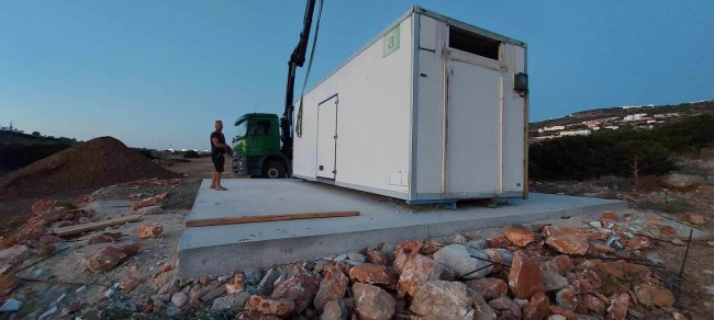 The idea is that there is a concreted area on both sides of the container which faces north to south (front door north, back south) giving me shade in the morning on one side and in the afternoon on the other. That way, once I put up shade sails, I will have usable space outside the container on both sides in order to work.