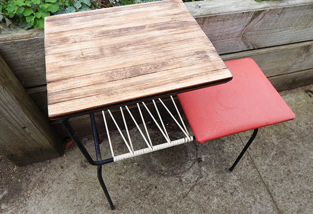 The red cake stand was made out of a small metal lamp base. The top was a flower shaped bit of wood we found which we sprayed gloss white (all the tops were sprayed gloss white to make them easy to clean). This one also went through a colour change.