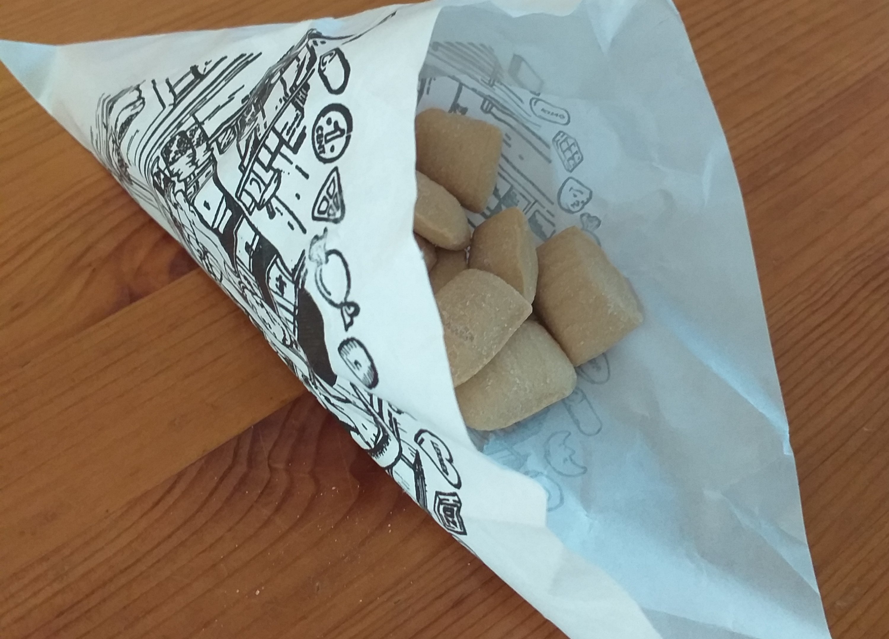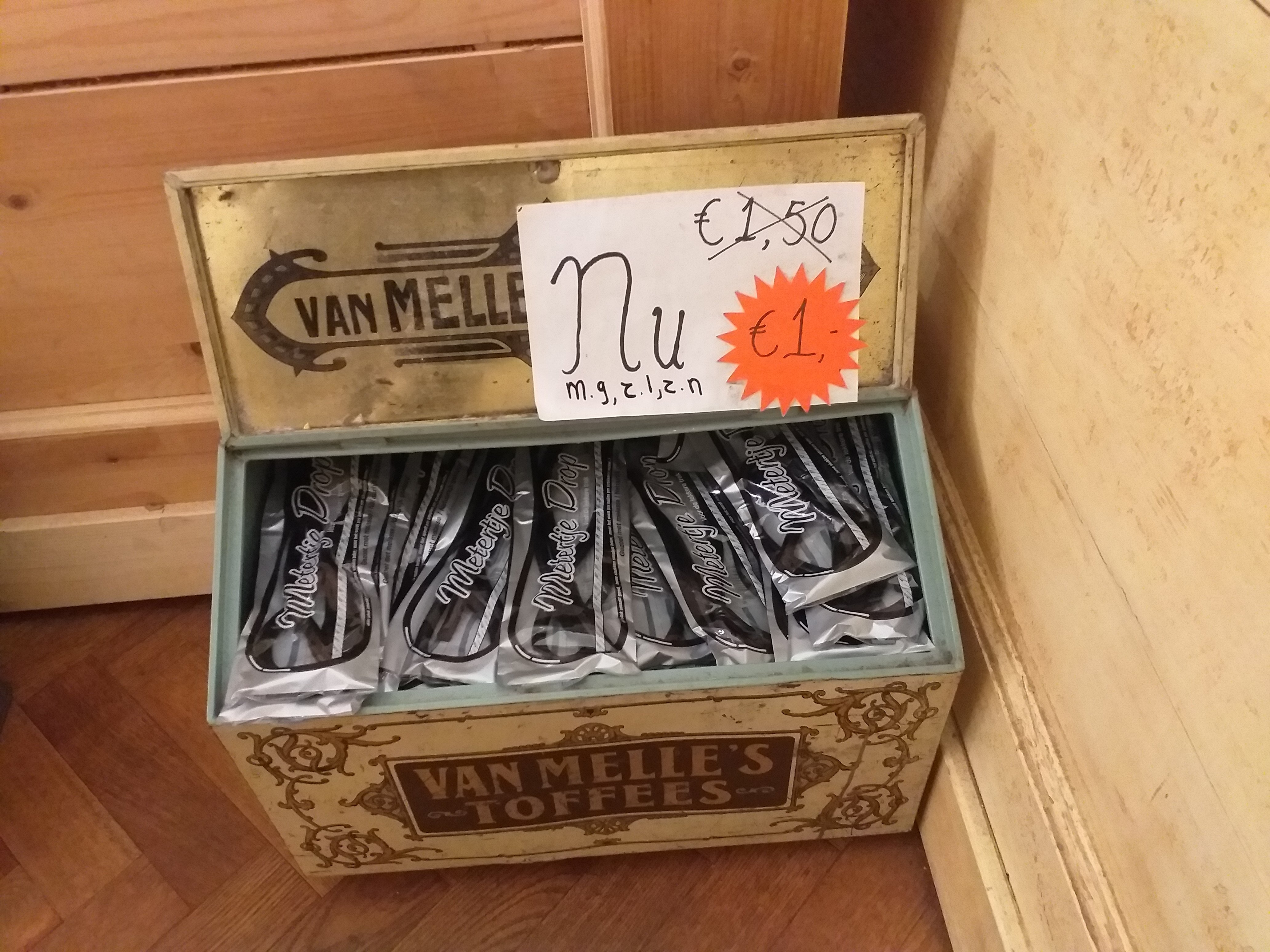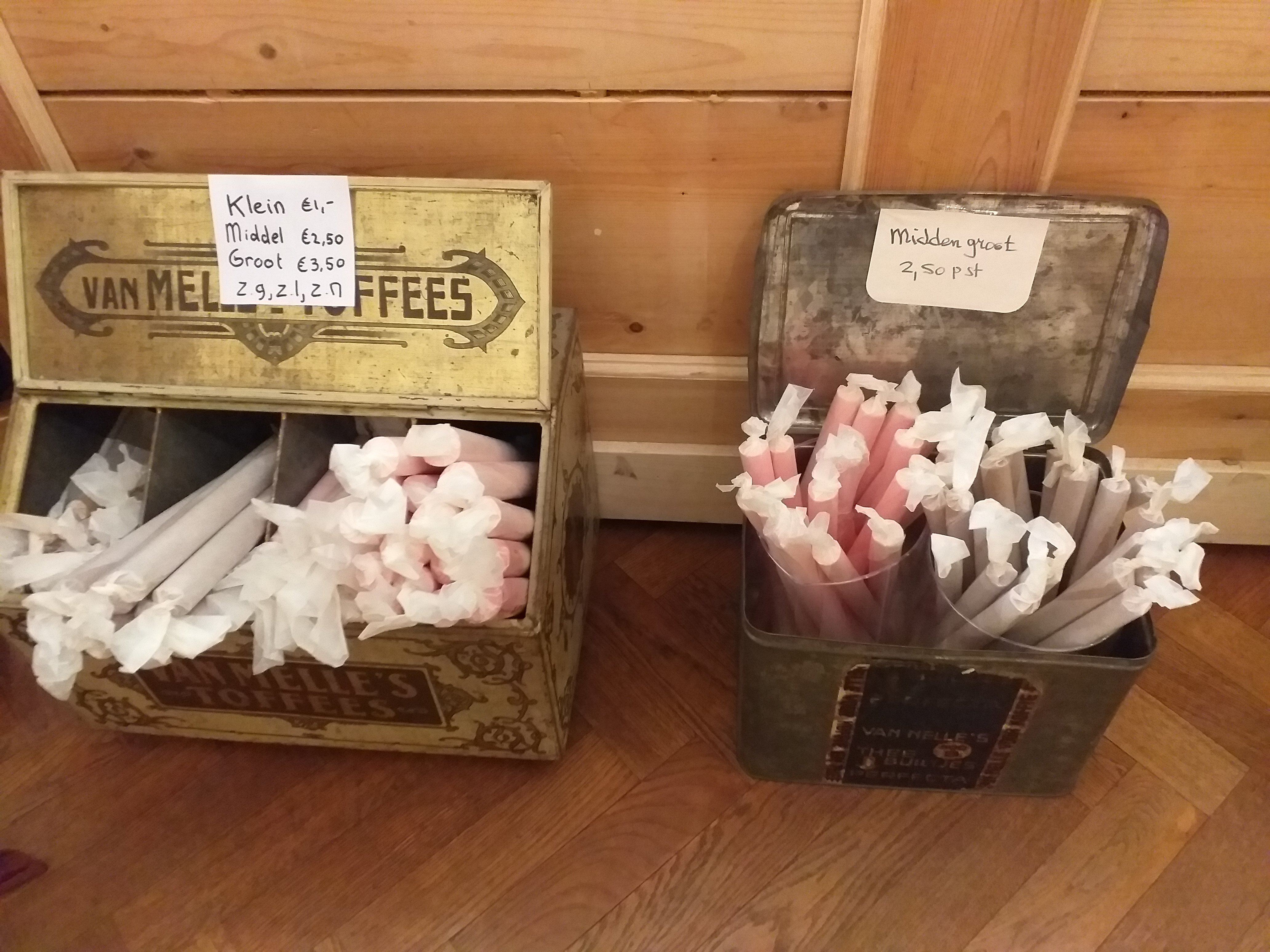 This visit to the candy shop in Zutphen was no different. The old man that ran the shop gave us a taste of polka brokken, a brittle candy with a buttery taste and we had to take some home with us. In the traditional cone shaped paper of course.