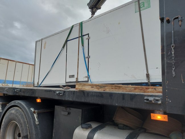 It was hard work getting the container off its trailer and onto the truck. I’m sure the only reason swearing wasn’t involved was that I was there, watching the whole thing. Turns out the crane just wasn’t big or strong enough to lift my container. The lifty-lifty man said it was much heavier than most ‘normal’ containers. Yeah. Its 7.5m long, a bit wider and much taller than most. So, it IS heavier.