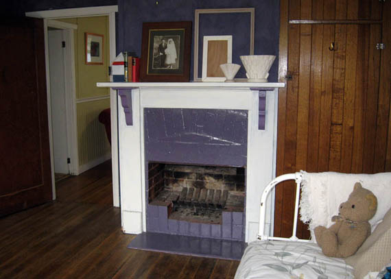 The room has an open fireplace which I never used, but it was nice to just have it. The fire surround was painted but I didn’t like the colour so I repainted it white and purple to match the walls.
