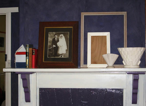 The mantle just holds a collection of things. An old photo, some empty frames, 2 of the vases from my collection which didn’t fit in the dining room.