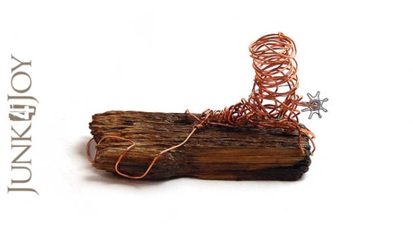 The other day he got some new copper wire and made this cute little cowboy boot. I’d been sending him all kinds of links of cowboy boots made out of wire but Wayne always does things his way. Its a boot with a spur and a lasso.