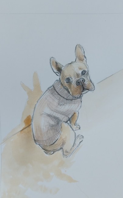 Another quick sketch using tea plus red wine. Turns out the red wine is a huge disappointment. Nothing red about it… just a stain. Not a particularly good one either, I admit I was hoping for something redder.